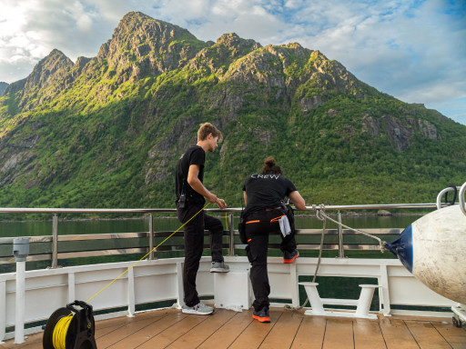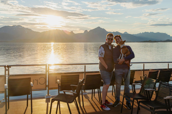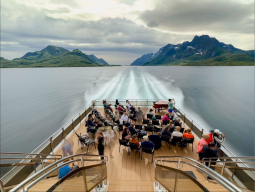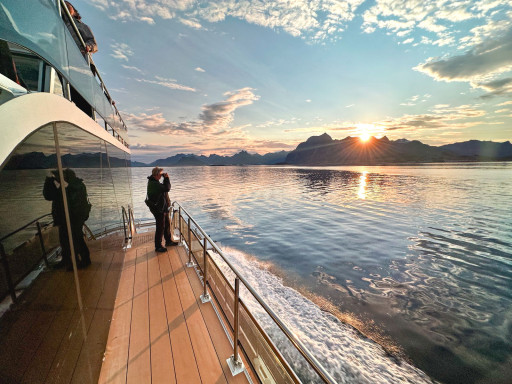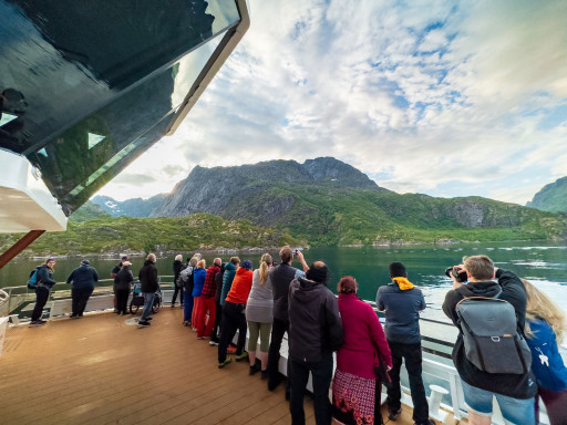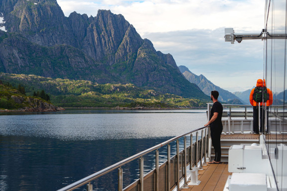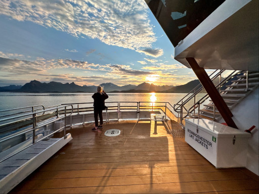 Relax in the warm, comfortable lounges with panoramic windows, or step outside onto the multi-level decks for unobstructed views. Along the way, our welcoming crew will share fascinating stories about the region’s wildlife, rich history, and the enduring fishing traditions of Lofoten's resilient communities.